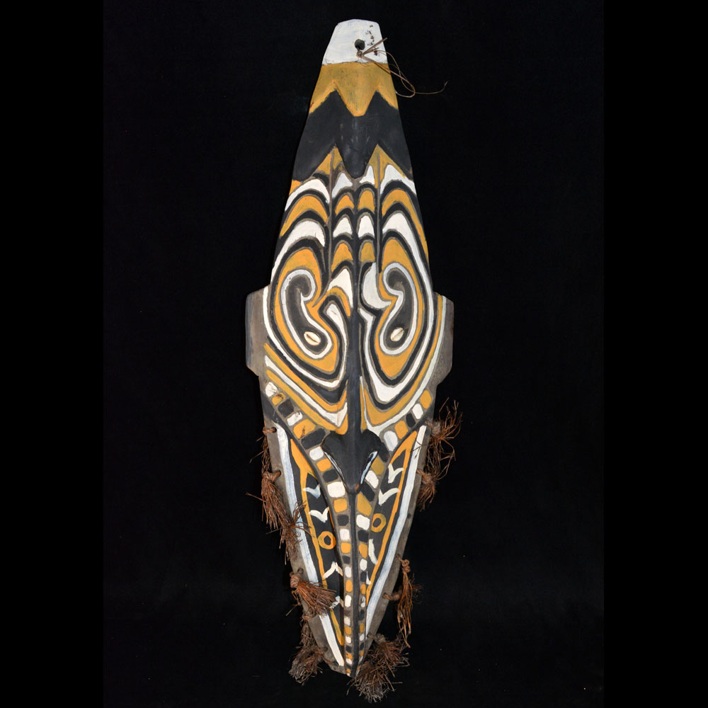A classic middle Sepik ancestor mask with good carving and nice bright paint. It is 28.5 inches tall.